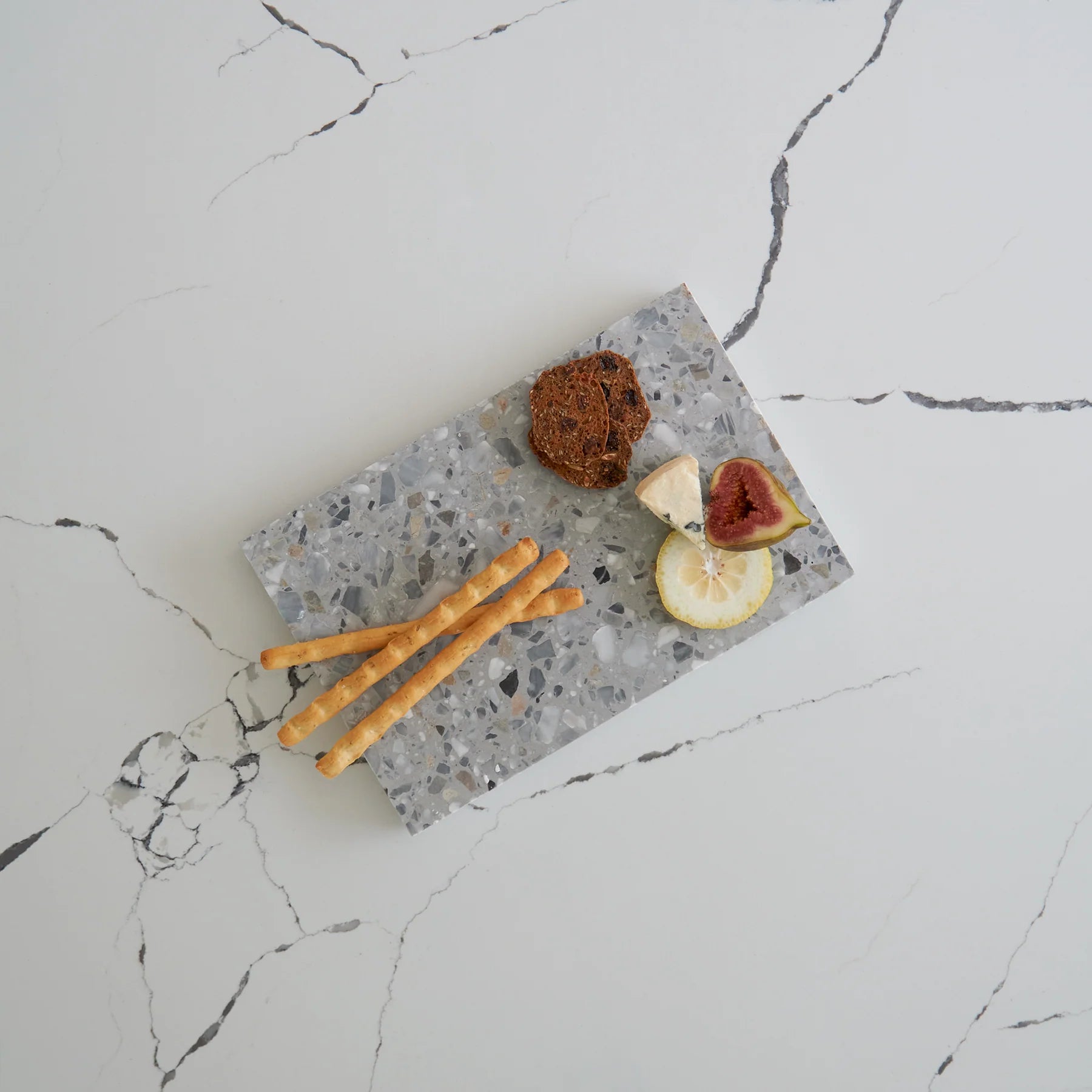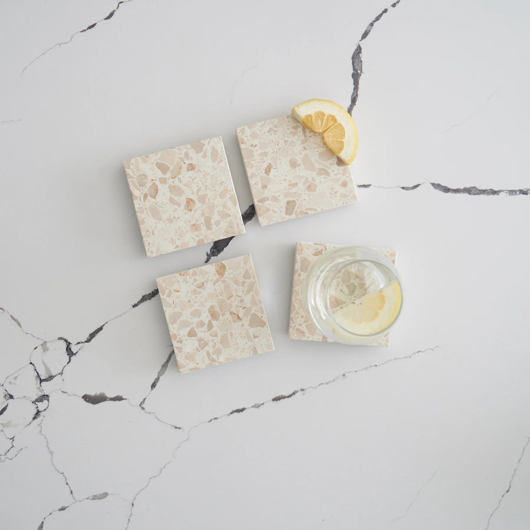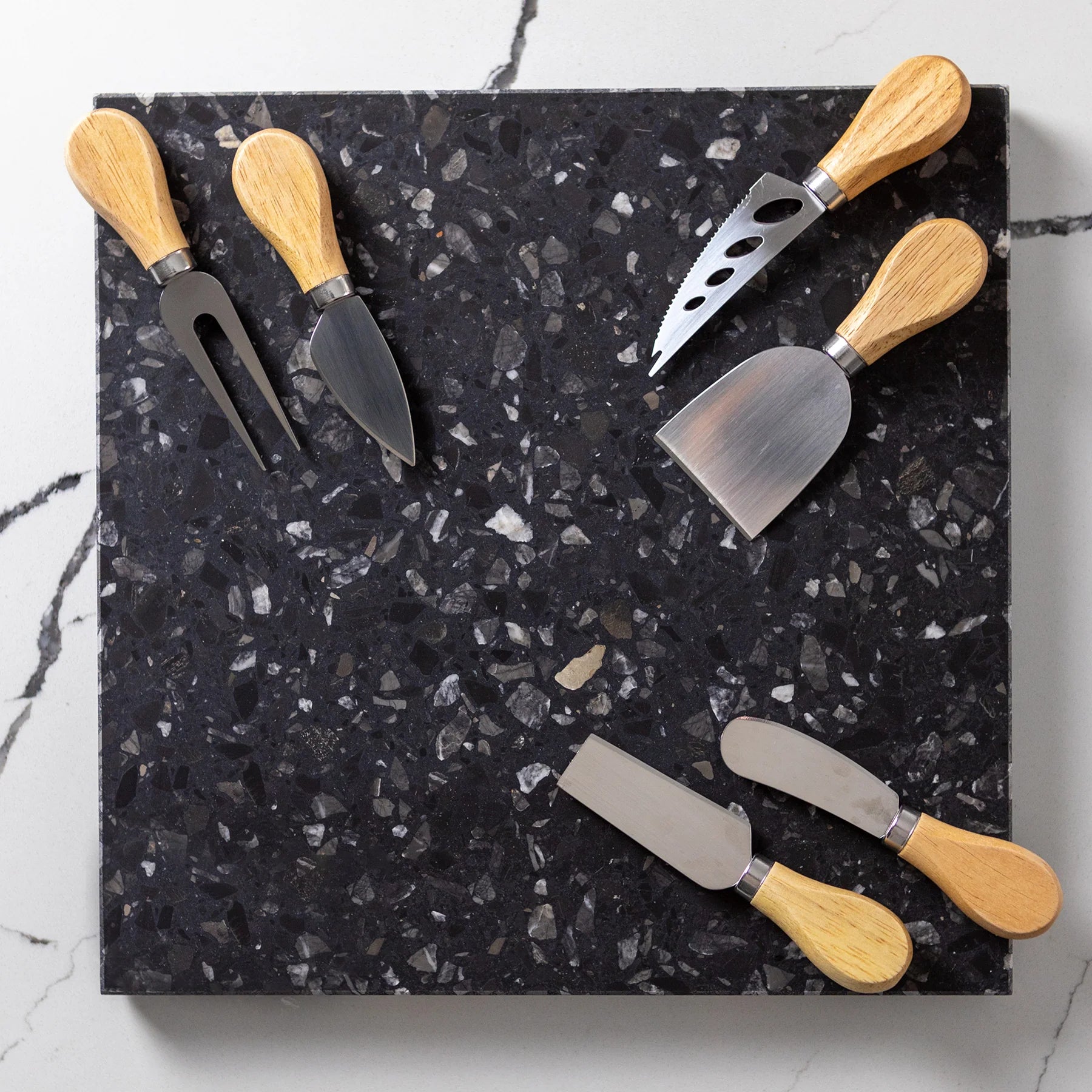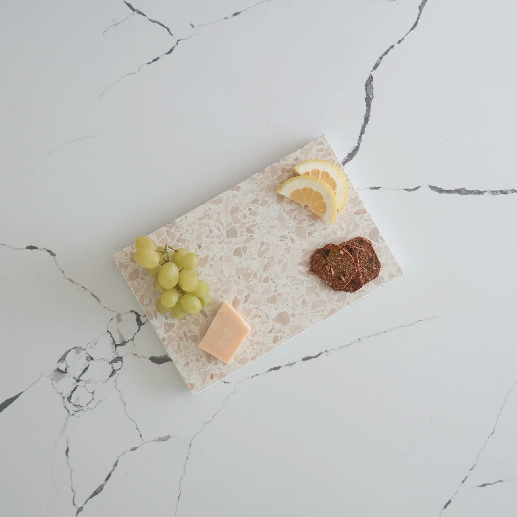 Stack Marble and Terrazzo pieces for an organic effortless look. Use these to create interest within your setting by layering textures and sizes.