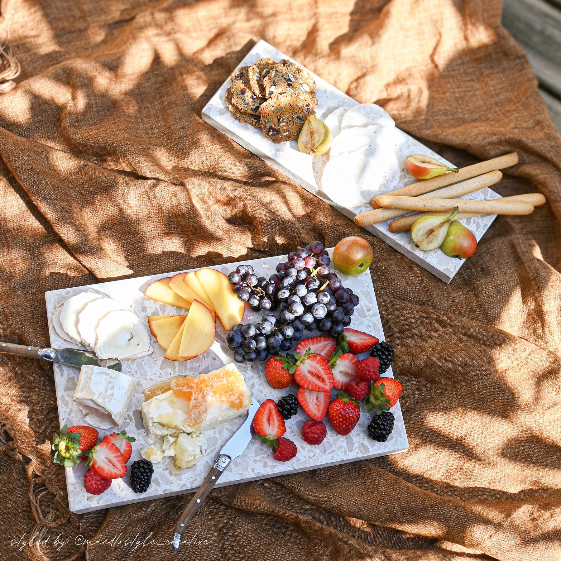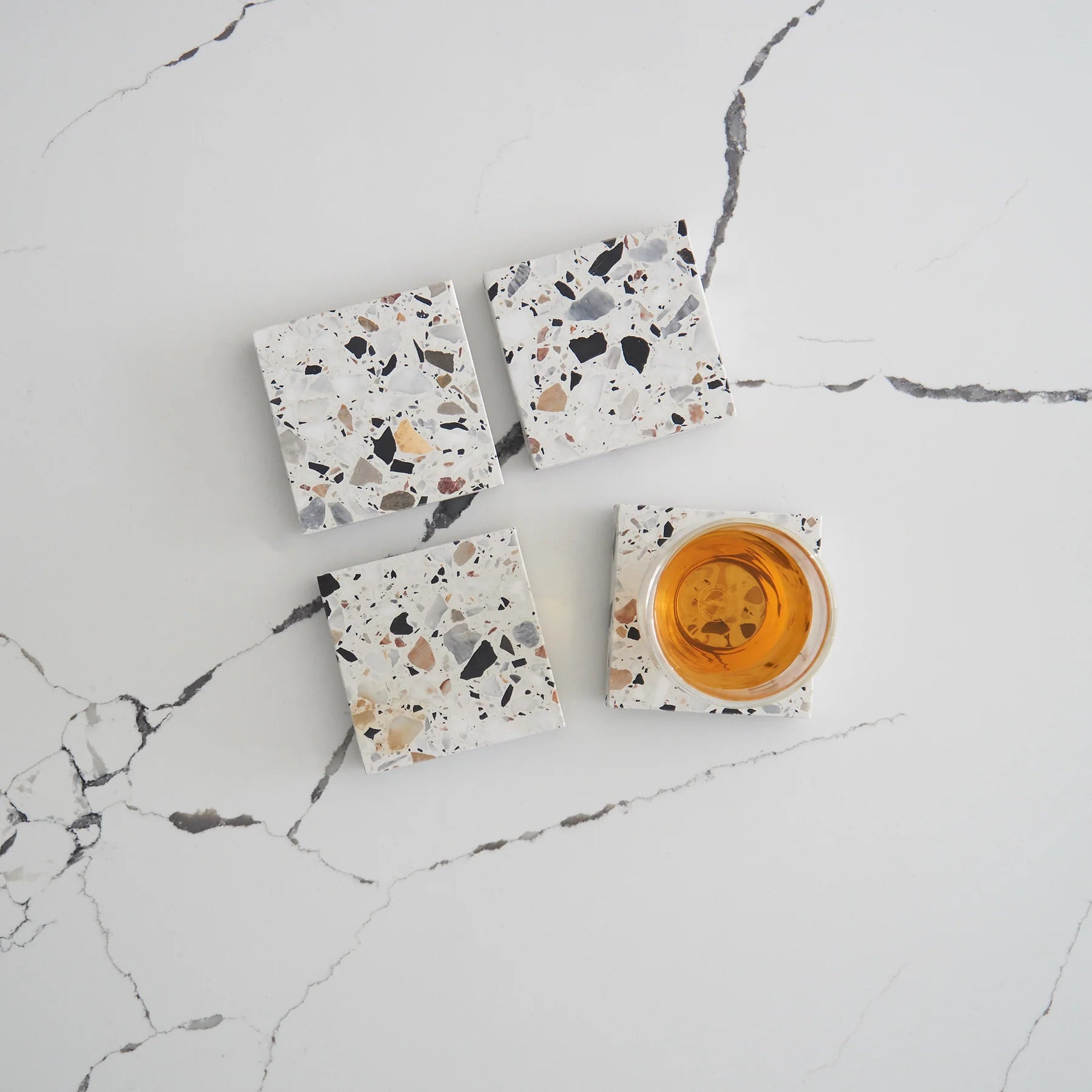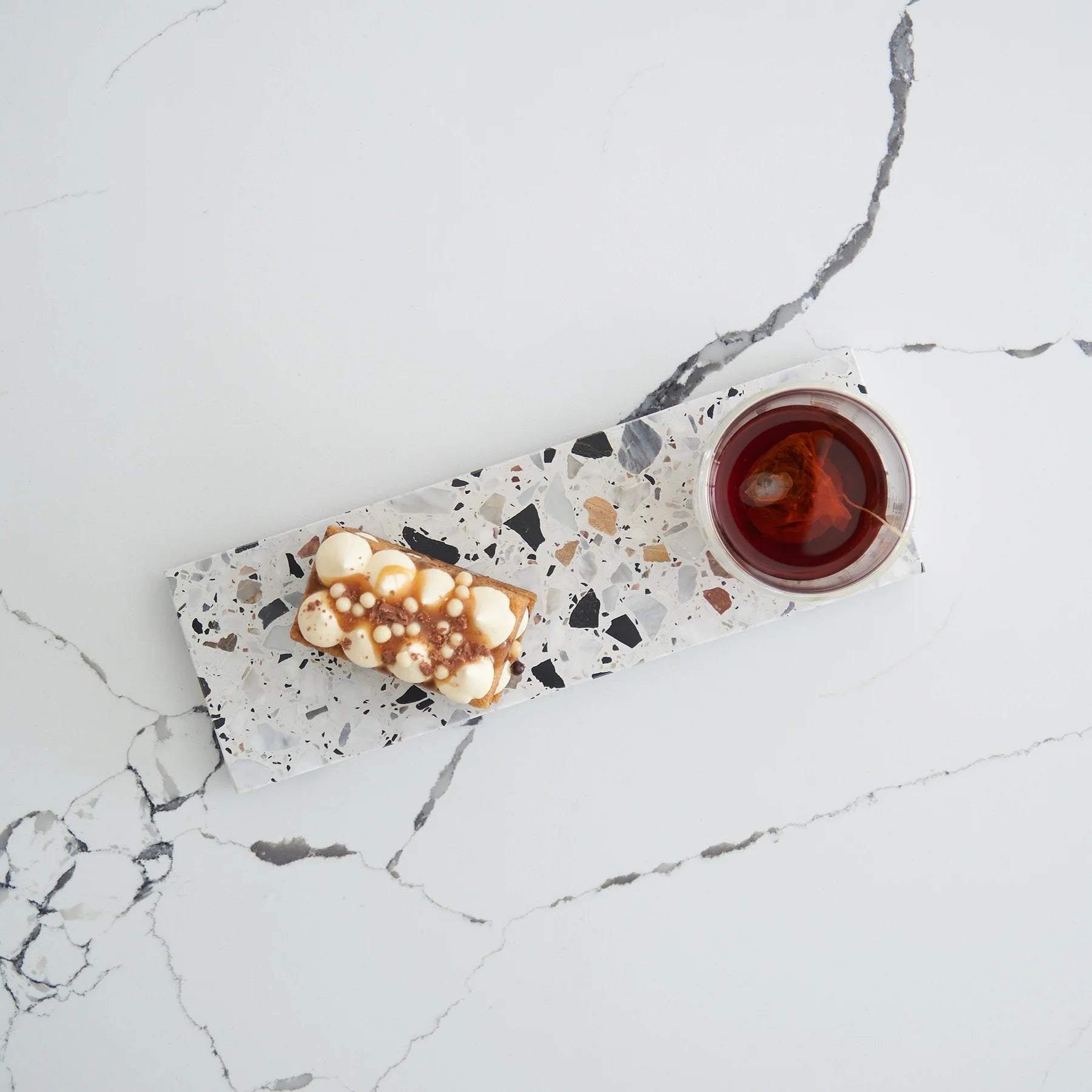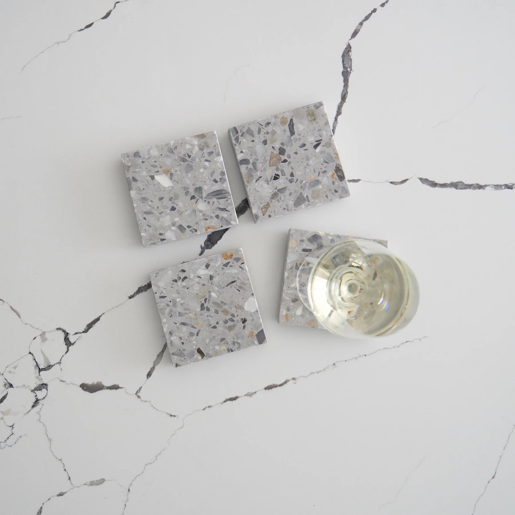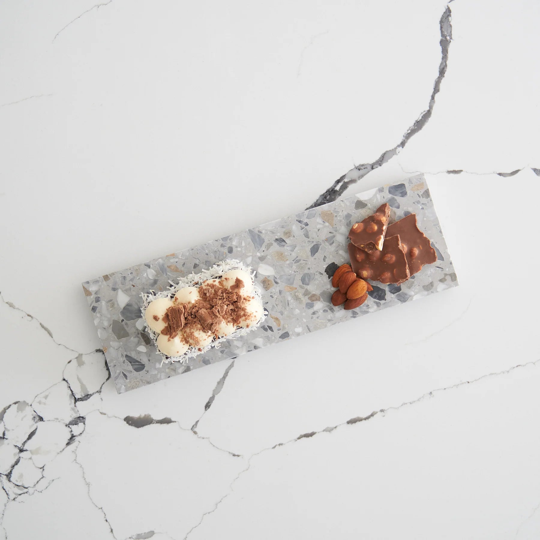 Stack Marble and Terrazzo pieces for an organic effortless look. Use these to create interest within your setting by layering textures and sizes.